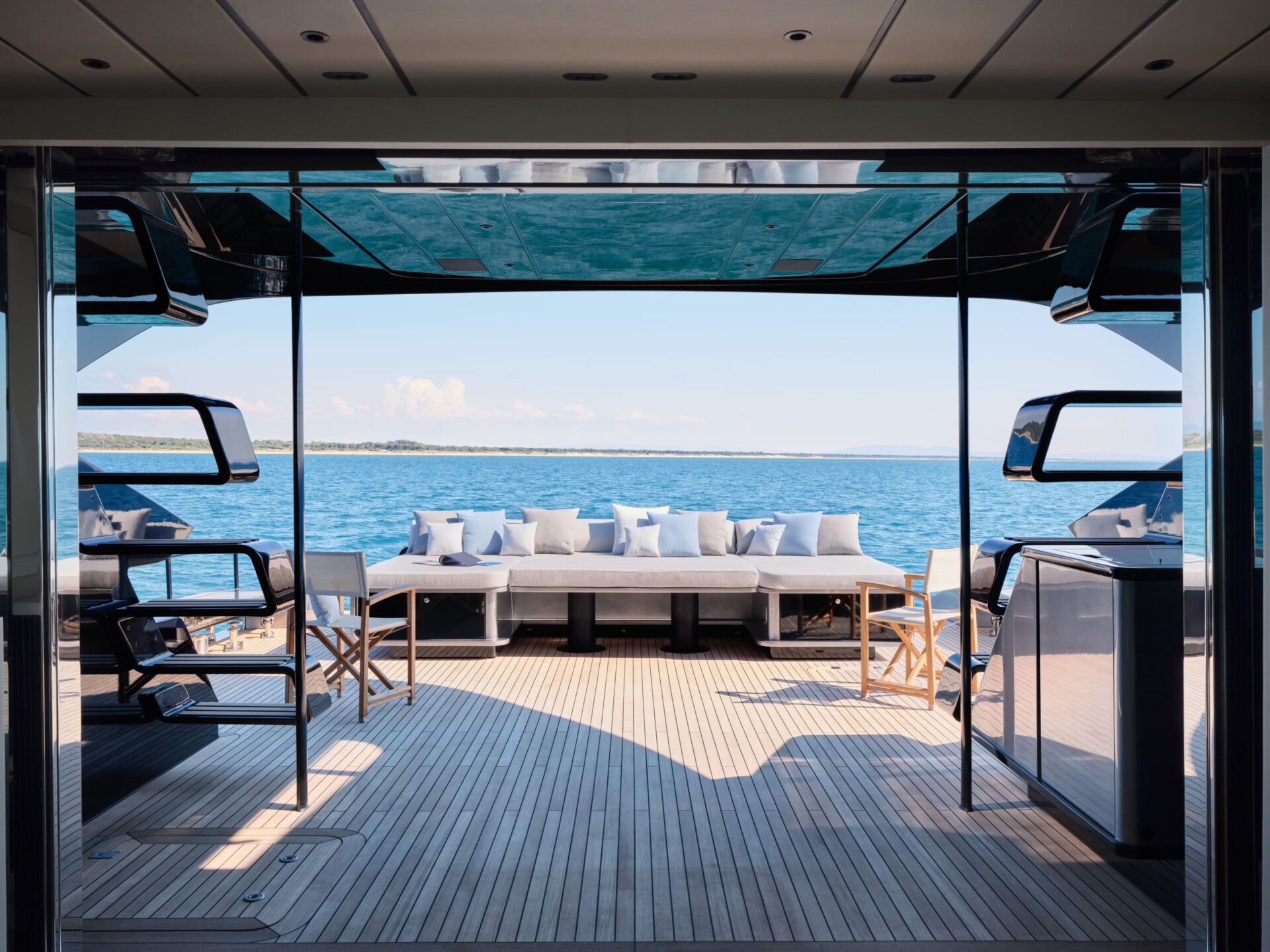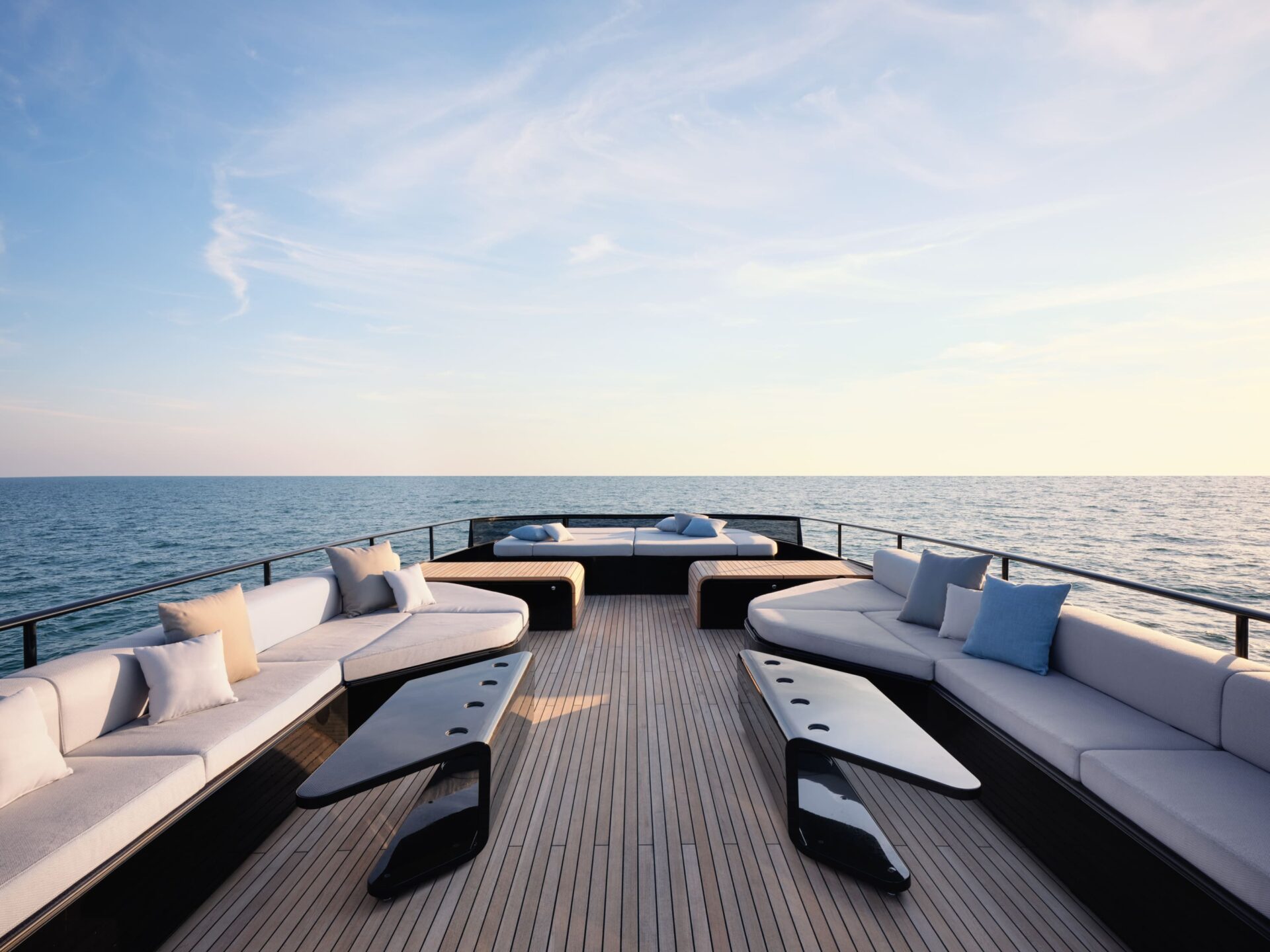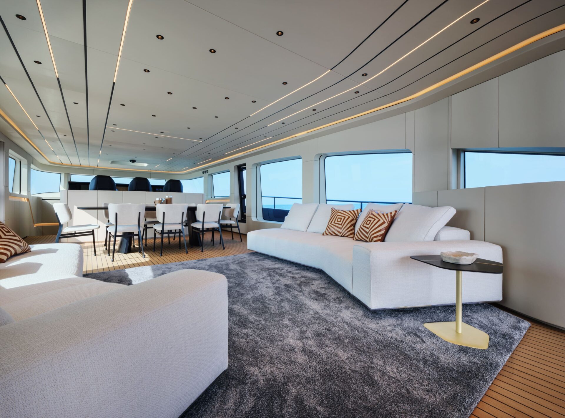 A vessel where the exteriors and interiors flow smoothly into one another in a soft, fluid movement. The spatial revolution has also involved the lounge areas both forward and aft; the latter can be converted into a generous, pleasant beach area that ensures the closest possible contact with the sea.