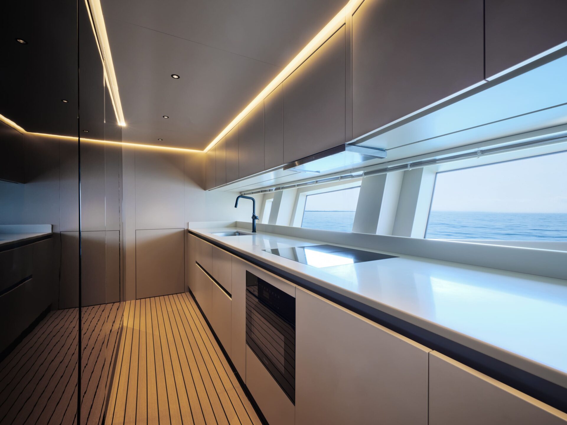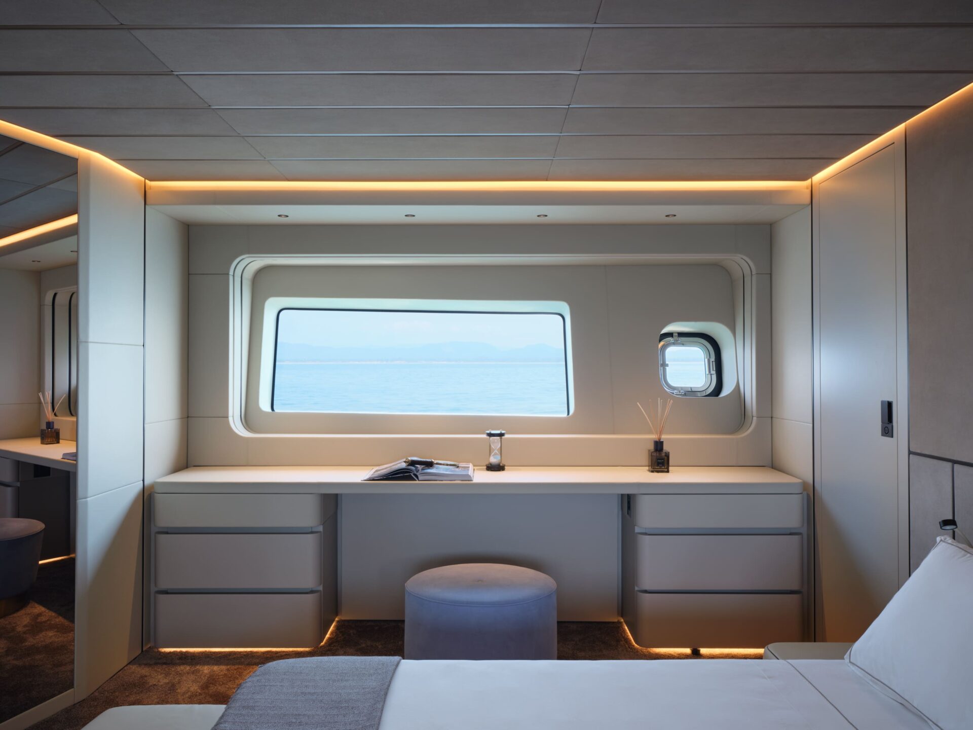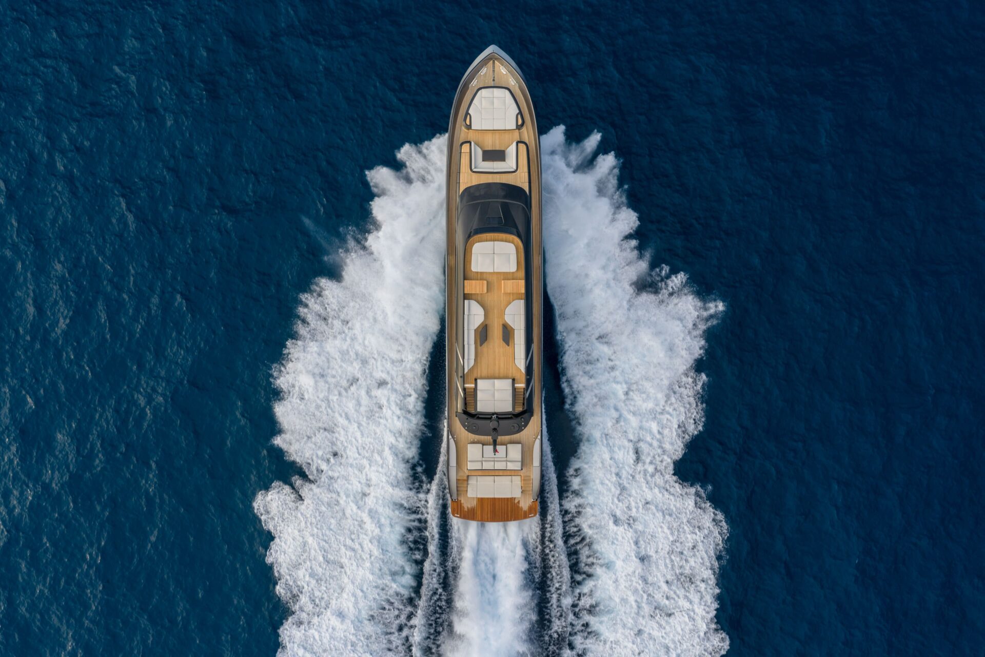 A vessel where the exteriors and interiors flow smoothly into one another in a soft, fluid movement. The spatial revolution has also involved the lounge areas both forward and aft; the latter can be converted into a generous, pleasant beach area that ensures the closest possible contact with the sea.