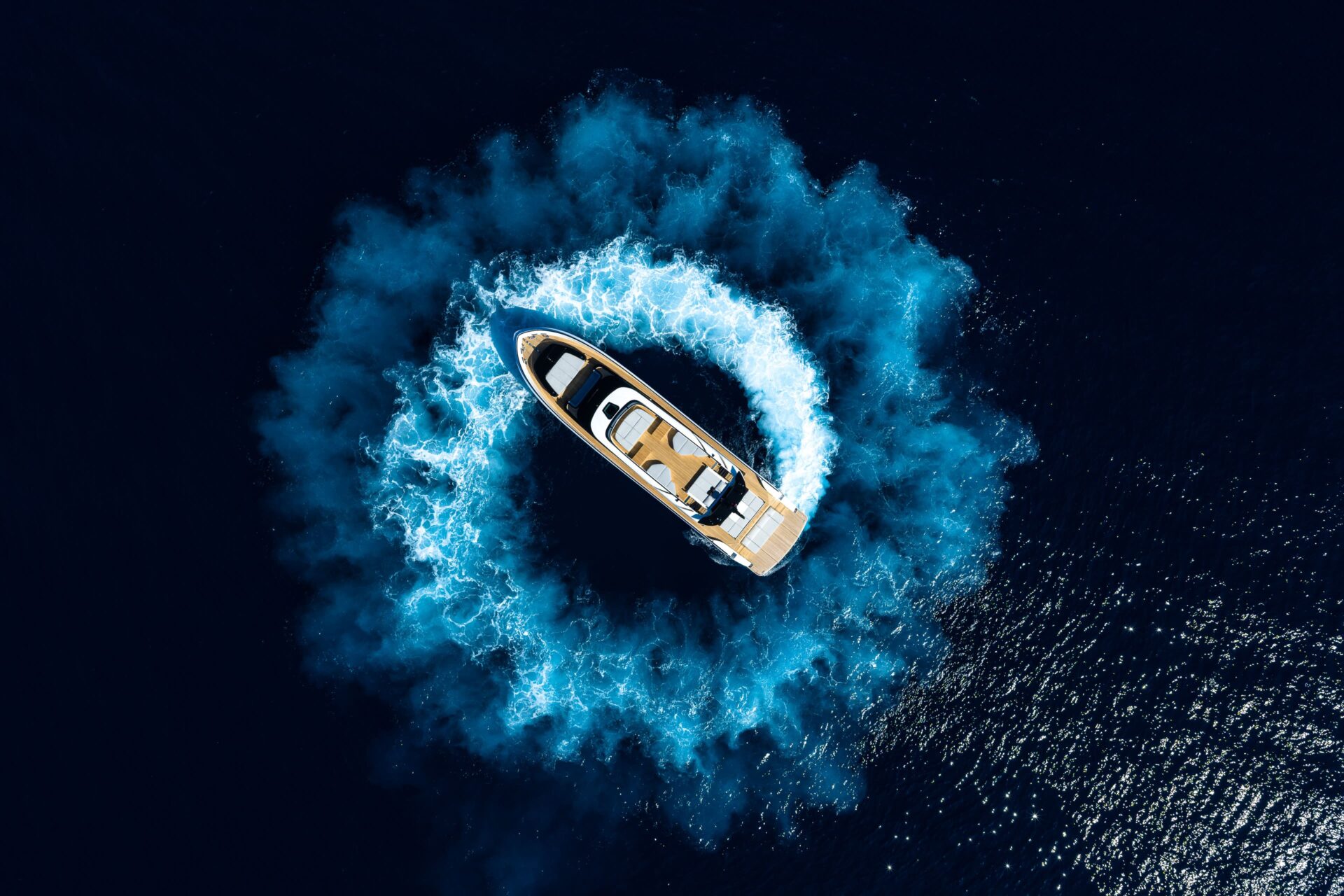 A glaring example is the sun deck, where reverse glazing along the boat’s profile further increases space and comfort and offers a wonderful outlook over the sea, accessible from the aft deck via one or two carbon-fibre external staircases.