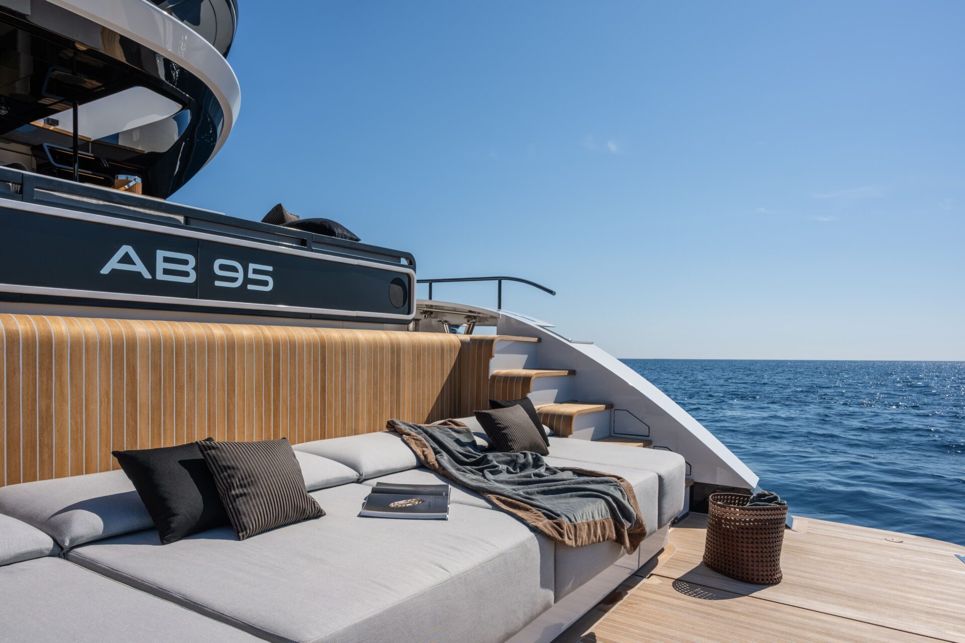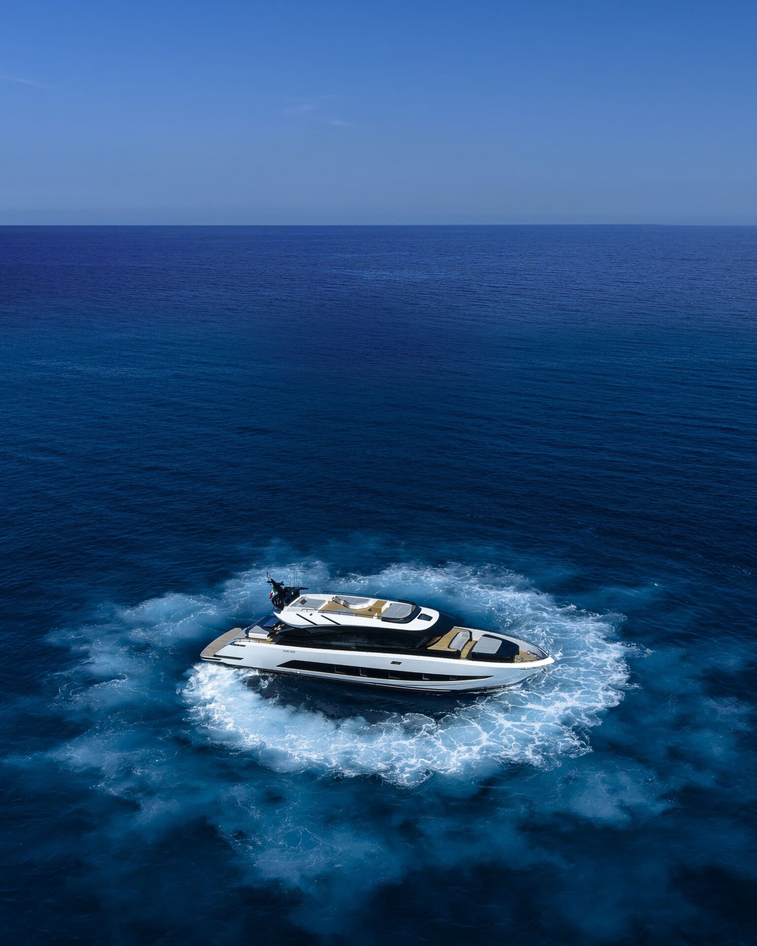 This model takes forward the innovations introduced with the larger sister AB 110, which integrates all the technical and technological features developed by the brand in its 30 years’ history, its reliability, engineering solutions, propulsion system, and construction materialswith a new design.